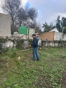 Por eso, el personal de parques y jardines del Ayuntamiento está trabajando en el mantenimiento de nuestro panteón municipal.