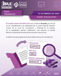 *Xalapa, Ver., 31 de marzo 2026.-* En sesión extraordinaria, el Consejo General del Organismo Público Local Electoral del Estado de Veracruz (OPLE Veracruz) aprobó el documento rector de la estrategia institucional “Democracia 360°”.