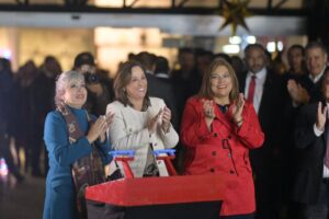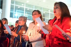 Junto a la directora del organismo, Clara Mora Juárez y sus colaboradores, congregados en la explanada, la Gobernadora hizo el conteo regresivo para apreciar la iluminación del pino y luces propias de las tradiciones.