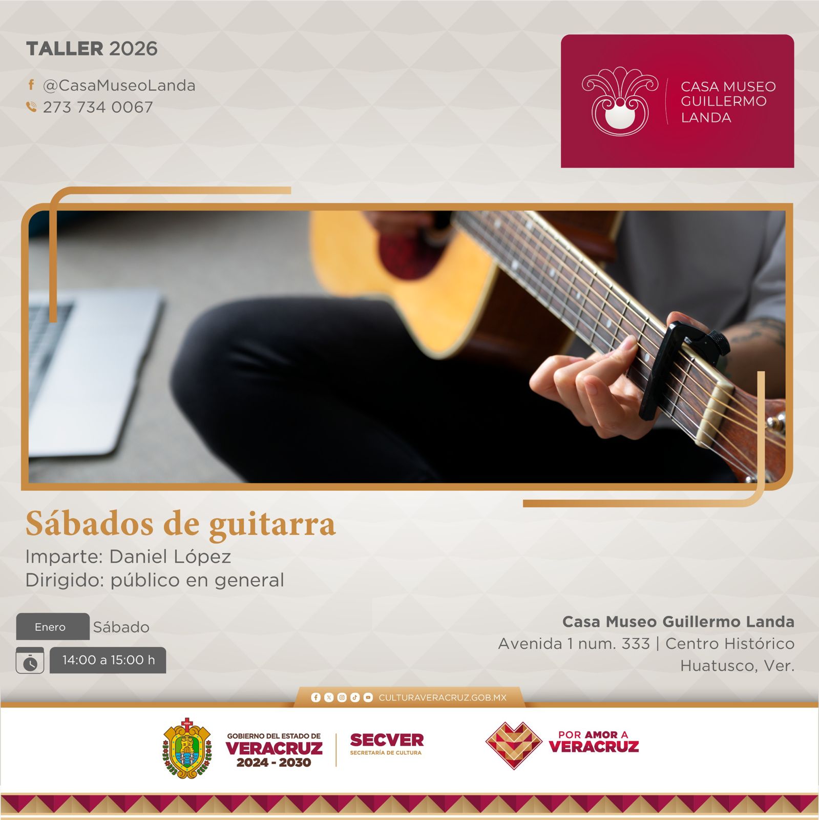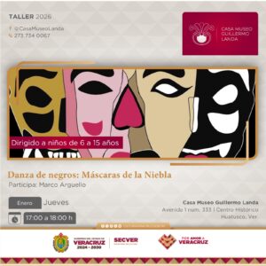 Xalapa, Ver., jueves 08 de enero de 2026.- La Secretaría de Cultura de Veracruz (SECVER) invita la comunidad en general a integrarse a la oferta de talleres durante enero en la Casa Museo Guillermo Landa, en Huatusco. Las actividades son gratuitas y aptas para todo público.